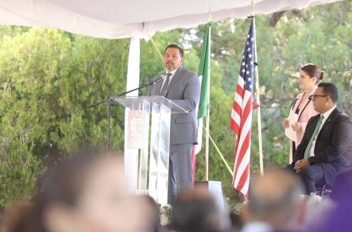 El Presidente Municipal, Cruz Pérez Cuéllar, encabezó este día la ceremonia para conmemorar el 58 aniversario de la entrega física de El Chamizal, evento en el que participaron autoridades mexicanas y estadounidenses.