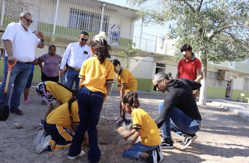 Como parte de las acciones para fortalecer el cuidado del medio ambiente y fomentar la educación ambiental en las nuevas generaciones, la Dirección de Parques y Jardines recibió la colaboración del Club Rotario Juárez y de la Fundación Grupo México en los trabajos de forestación y reforestación en la Escuela Primaria “José María Morelos y Pavón”.