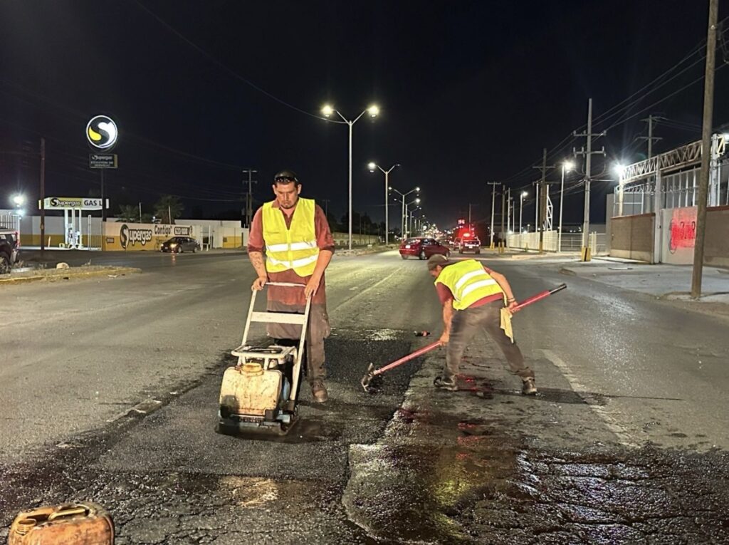 Ayer por la noche, cuadrillas de bacheo de la Dirección General de Obras Públicas y de empresas contratadas trabajaron de manera nocturna en diversos puntos de la ciudad.